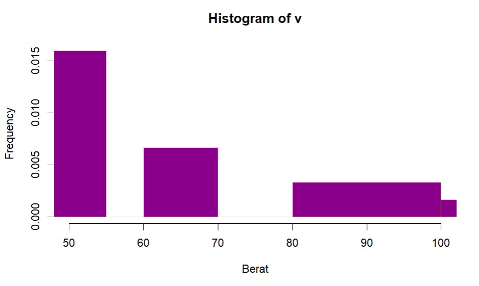 m<-hist(v, xlab = "Berat", ylab ="Frequency",